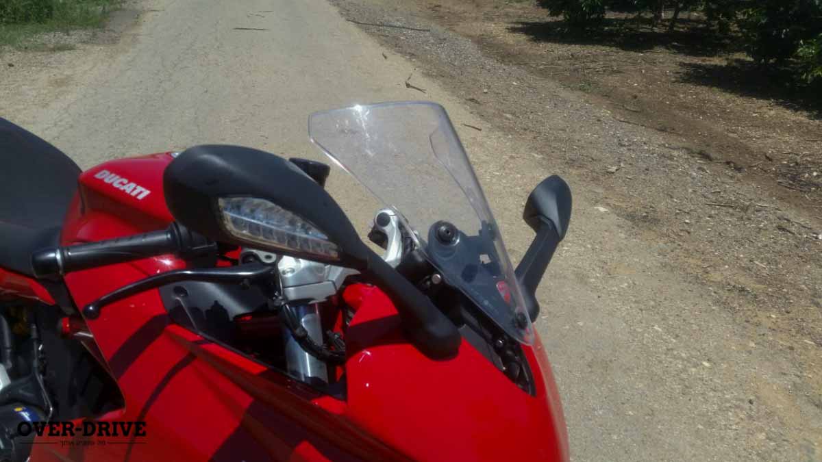 קצת קשה לקבל את זה בדוקאטי עטוי פיירינג עם קליפ-אונים (אפילו כאלו שמטפסים קצת מעל המשולש העליון) אבל נוח כאן, גם בסתם שיוט בין-עירוני. המשקף הקדמי מתכוונן ובמצבו העליון נותן מיגון יעיל למדי, המושב ממשיך להיות נוח אחרי גם אחרי 100 ק"מ והתנוחה נשארת במקום הנכון שבין נוחה להתקפית.