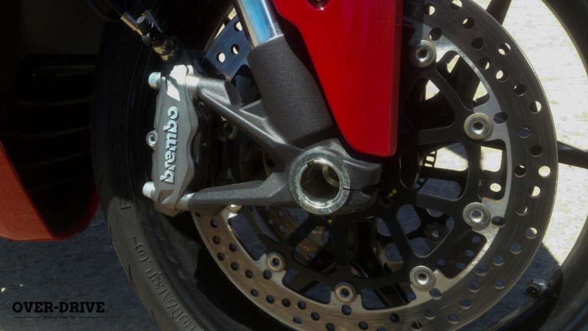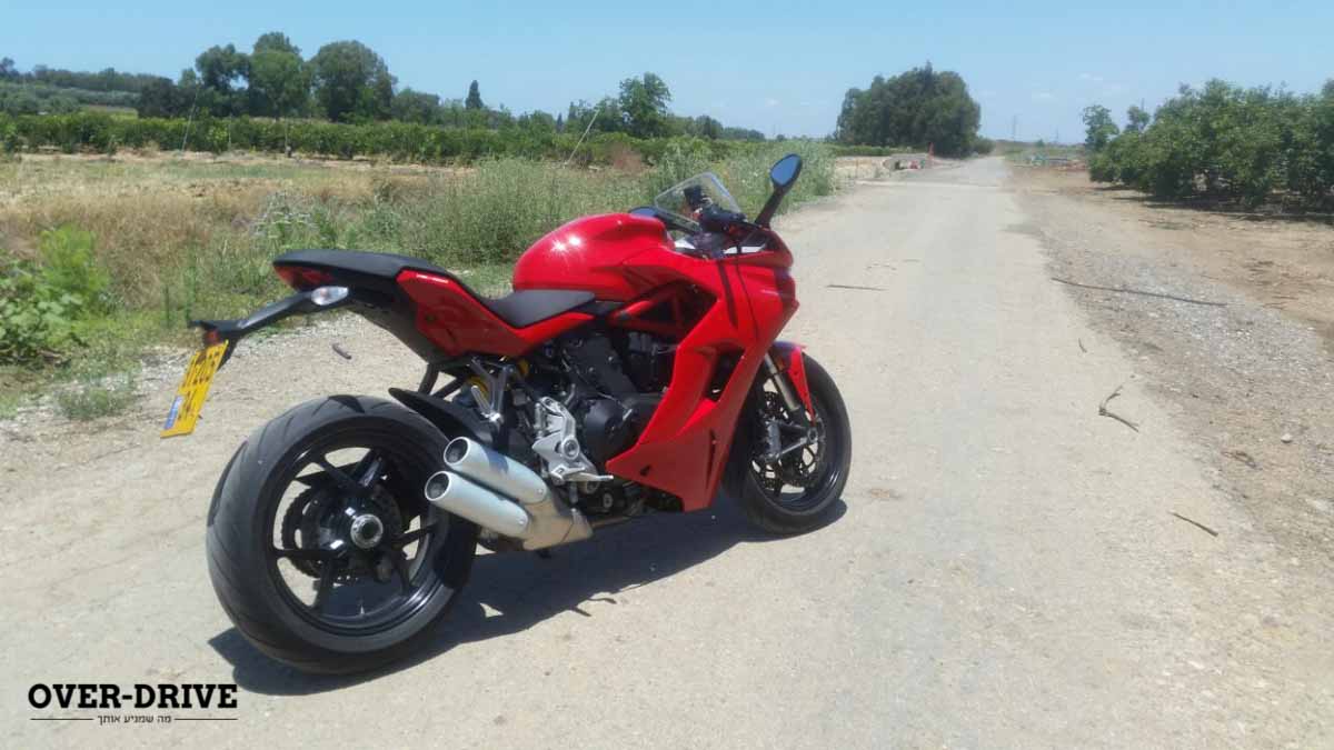 עוד דברים שצריך לדעת – דוקאטי מספרים שזווית ההיגוי זהה לזו של הפאניגלה 959 מחד אבל המפסע קצר מאידך מה שאמור להתבטא בזריזות מוגברת (בטח אם מתחשבים במנוף הרחב והגבוה שנותן הכידון בסופרספורט) ואם אנחנו כבר באזור הגלגל הקדמי נזכיר את שני הדיסקים בקוטר 320 מ"מ עליהם מונובלוקים ארבעה-בוכנתיים רדיאליים של ברמבו.