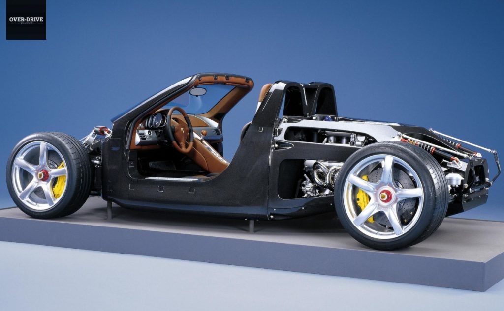 פורשה הלכו עד הסוף לא רק במה שקשור ליחידת ההנעה ורצו להעניק לנהג תחושה קרובה ככל הניתן למכונית מרוץ טהורה. פורשה קאררה GT תוכננה מלכתחילה כרודסטר עם גג קשיח פריק. המנוע מוקם ממש מאחורי המושבים האחוריים כשהוא חשוף למחצה תחת כיסוי מרושת, מה שסייעה לא רק לסאונד ולמראה אלא גם לקירור. תיבת ההילוכים הייתה ידנית עם שישה יחסי העברה, בלי כל מיני כל מיני טריקים רובוטיים סטייל פורמולה 1 ועם ידית הילוכים שמוקמה במעלה הקונסולה המרכזית קרוב לגלגל ההגה. ההנעה הייתה כמובן אחורית בניגוד לזו הכפולה המתוחכמת של ה-959 משיקולי הנאה וגם משקל. כן, יש גם את עניין המשקל. פורשה קאררה GT היא בעלת שלדת מונוקוק מסיבי פחמן אליה מחוברות תתי שלדה מסיבי פחמן מרוכבים ולקינוח גם מכסה המנוע עשוי סיבי פחמן ובלמים קרמיים הם סטנדרט. כל אלו אפשרו להציג משקל עצמי של 1,380 ק"ג – 150כ- ק"ג פחות מפורשה 911 טורבו של אותה התקופה.