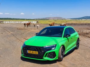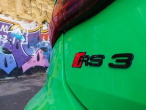 עם צבע שנקרא על שם מסלול המירוצים המפורסם בדרום אפריקה – ירוק קייאלאמי – אי אפשר לפספס את רכב המבחן שקיבלתי. זה צבע בין הירוק בעיניים של ילד לבין ירוק זרחני. מה שבטוח הוא, שאם אתה אדם ביישן זה ממש לא הצבע בשבילך. אבל לטעמי זה צבע נהדר לאאודי RS3. הוא לוקח את העיצוב החיצוני ומקצין אותו תוך הבלטה של כל ניפוחי מרכב ביחס ל-A3 סטנדרטית. גם חבילת ההשחרה של מסגרת החלונות צד, צידי השמשה האחורית, מראות הצד והחישוקים תורמת את שלה לנוכחות המוגברת.
