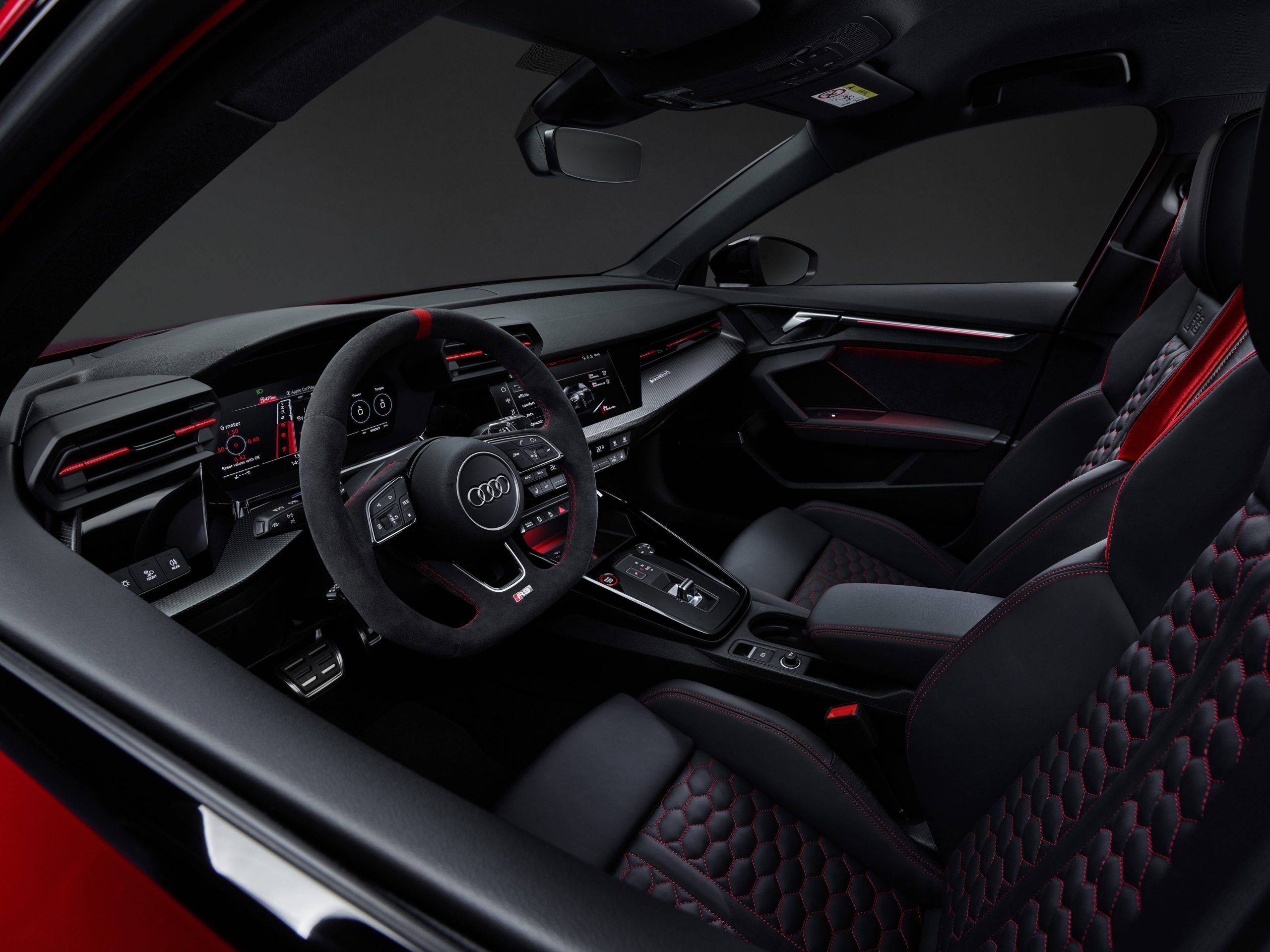 כמעט שכחתי לספר שההיגוי מהיר מאוד, עם פחות מ-2 סיבובים בין נעילות אך נטול פידבק מלבד משקל טוב (בעיקר במצב הרך). אולי גם תרצה לדעת שבידוד הרעשים לא מושלם ובעיקר מתקשה לבודד את הרעשים מהצמיגים הרחבים, אבל RS3 עדין משייטת בקלות בכבישים המהירים. הפעל את בקרת השיוט האקטיבית המוצלחת ותוכל להירגע מאחורי ההגה בדרך חזרה מהמסלול או מטיול הנהיגה שעשית.