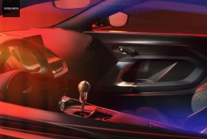תא הנוסעים מנסה לשלב בין מראה עדכני לתחושה רייסרית עם נגיעות רטרו. יש לוח מחוונים דיגיטלי ומסך מולטימדיה מזדקר שלא משתלט על הקונסולה המרכזית (זה כבר סוג של רטרו), דיפוני דלתות מסיבי פחמן, רצועות עור המשמשות כידיות פתיחה וריפוד מושבים המשולב בבד משובץ. אבל מה שהכי בולט בתא הנוסעים של אסטון מרטין ואלור נמצא בקונסולה המרכזית: ידית העברת הילוכים ידנית.
