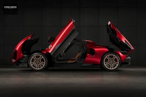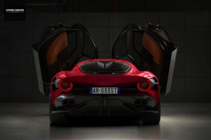 לא רק השם דומה. העיצוב של אלפא רומיאו 33 סטרדאלה החדשה הוא מחווה מפורטת ומתקדמת לעיצוב המקורי. זה כולל את חופת הפנסים הקדמיים המשתלבת אל תוך הכנפיים הקדמיות, ממשיך בחופה המעוגלת של תא הנוסעים ומגיע עד לדלתות כנפי השחף השקופות בחלקן העליון ומהוות למעשה חלק מהגג. לצד המודרני תורמים יחידות תאורת הלד מלפנים ומאחור, כולל אור הבלם המרכזי בצורת משולב בשמשה האחורית, לצד עזרים אווירודינמיים כמו החרב הקדמית התחתונה ומסיטי הרוח הנמתחים בדופן המכונית אל תוך הכנפיים האחוריות העשויים סיבי פחמן.