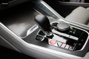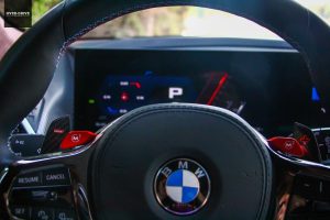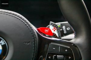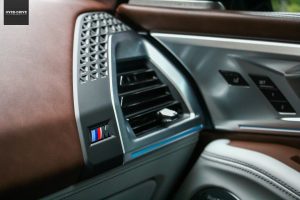 אחרי שאנשים הם גם יתהו גם במה אתם נוסעים כיוון שסמל ב.מ.וו מופיע רק על מכסה המנוע, ובשני צידי השמשה האחורית (כמחווה ל-M1). מעבר לכך, רק סמלי M בכל מקום, בפרט בתא הנוסעים. על גלגל ההגה, על ידית ההילוכים, ליד פתחי המיזוג, בספי הדלתות, על המושבים ואפילו חגורות הבטיחות הן עם תפירה בשלושת הצבעים המזוהים עם החטיבה.
