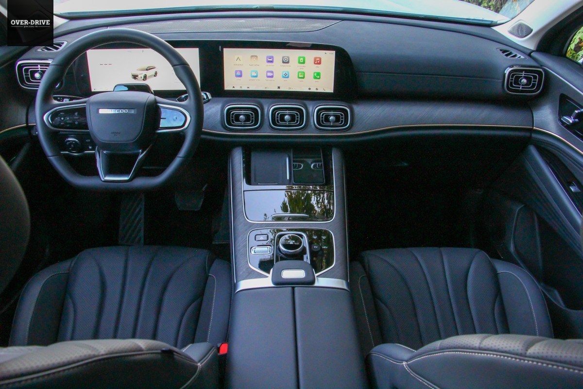 הגישה המעצימה הזו זלגה גם לתא הנוסעים. שילוב של צמד מסכים ענק רוחביים במחוברים כיחידה אחת, קונסולה מרכזית מוגבהת בין המושבים הקדמיים, שהם עצמם מעוצבים להפליא ועתירי אפשרויות כיוונון (חשמלית כמובן) ותאורת אווירה עשירה. אם זאת נראה שמעצבי ג'אקו קיבלו קצת יותר מידי השראה ממרצדס, כאשר נראה שמתגי החלונות, מתגי כיוון המושבים בדלתות ופתחי המיזוג הגיעו בטעות מאותו ספק של היצרנית הגרמנית. בהתאם לכך התחושה מהם כי גם איכותית, ובכלל ניכרת רמת ההקפדה על החומרים בתא הנוסעים, אם כי פחות אהבנו את הגימור דמוי העץ לרוחב לוח המחוונים.