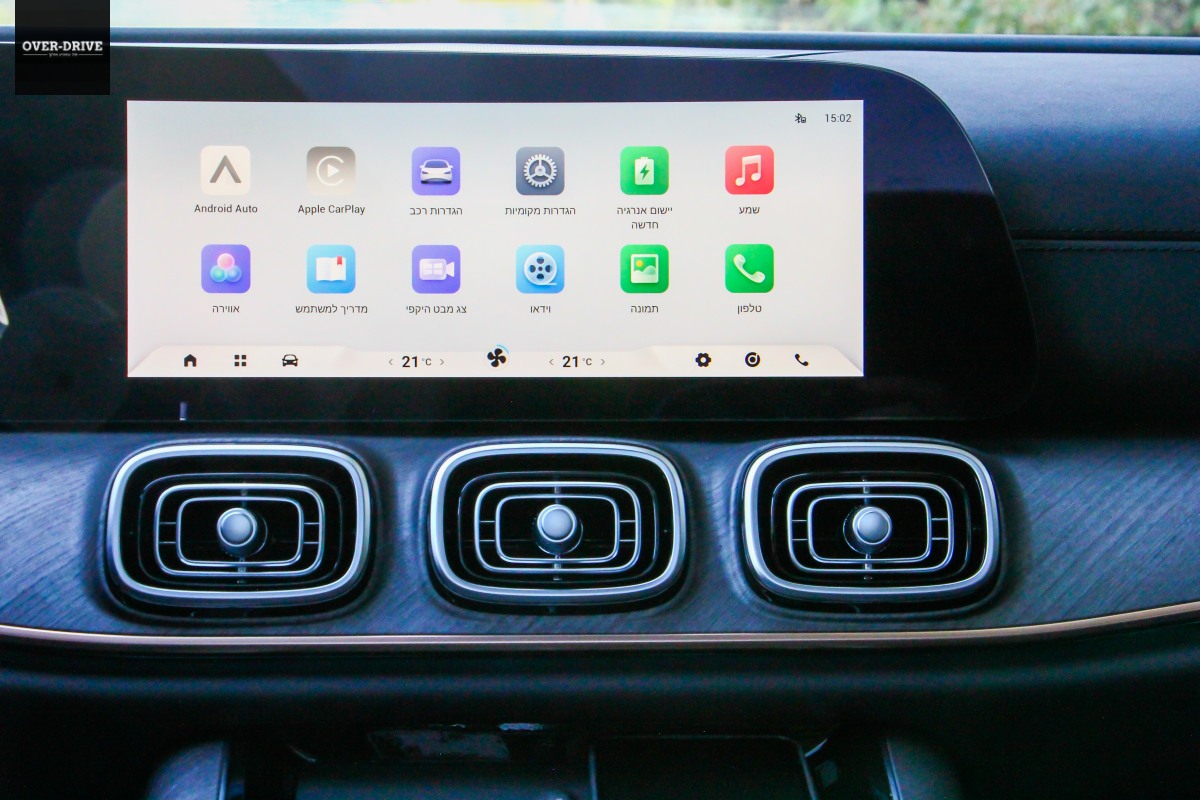 המערכת עוברת למצב היברידי באופן אוטומטי כאשר נותרו כ-25 ק"מ של טווח בסוללה, ומנוע הבנזין מצטרף לפעול באופן כמעט ולא מורגש כדי לאפשר תנועה באמצעות המנועים החשמליים ככל הניתן. אלא שנהיגה מאומצת גורמת לשאריות הסוללה להתרוקן די מהר, ואז מנוע הבנזין עובד בסל"ד גבוה ומורגש כדי לטעון מחדש את הסוללות, וככל שרמת האנרגיה מורגשת כך מורגשת שם הירידה בביצועים. למנוע הבנזין לוקח זמן לאושש מחדש את הסוללות וזו נקודה שצריך לתת לה תשומת לב, ולעבור למצב היברידי בשלב מוקדם אם אתם מתכננים נסיעה ארוכה. אגב, במצב היברידי עם סוללה ברמת טעינה נמוכה צריכת הדלק לא הרשימה במיוחד, עם נתון של כ- 12.5 ק"מ לליטר.