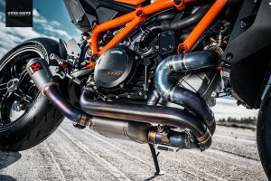 כמו במקרה של ה-990, גם ק.ט.מ 1390 סופר דיוק R קיבל הגדלת נפח כדי להתמודד עם תקנות זיהום האוויר ההולכות ומחמירות, כשעל הדרך ייכלה ק.ט.מ להרים עוד יותר את רף הביצועים לרמות שטרם נראו באופנוע הנייקד שלה. מנוע הוי-טווין בנפח 1,301 סמ"ק הוגדל לנפח של 1,350 סמ"ק על ידי הגדלת מהלך הבוכנה מ-108 ל-110 מ"מ. בק.ט.מ ניצלו את ההזדמנות גם כדי להוסיף גלי זיזים חדשים ומערכת תזמון שסתומים משתנה, כאשר ישנה גם תיבת אוויר חדשה ומוגדלת וניהול מנוע מעודכן. התוצאה היא הספק מרבי שקפץ מ-180 ל-190 כ"ס המתקבלים ב-10,000 סל"ד, לצד מומנט מרבי שעלה ב-0.8 קג"מ ל-14.8 קג"מ בסך הכל המתקבלים ב-8,000 סל"ד – 1,000 סל"ד גבוה מאשר במנוע הקודם.