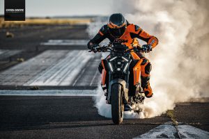 השלדה דומה לזו של הדגם היוצא אך היא קיבלה מספר חיזוקים וזרוע אחורית חד צידית מעט שונה. תפריט המתלים הסטנדרטי כולל מזלג קדמי הפוך בקוטר 48 מ"מ עם קרטרידג' פתוח ובולם אחורי, שניהם מסדרת APEX של WP ועם אפשריות כוונון מלאות. מערכת הבלימה גם היא תואמת ליעוד הספורטיבי וכוללת קאליפרים רדיאליים מסדרת Stylma של ברמבו.