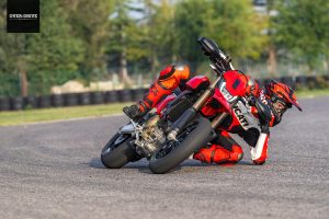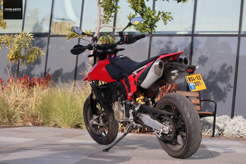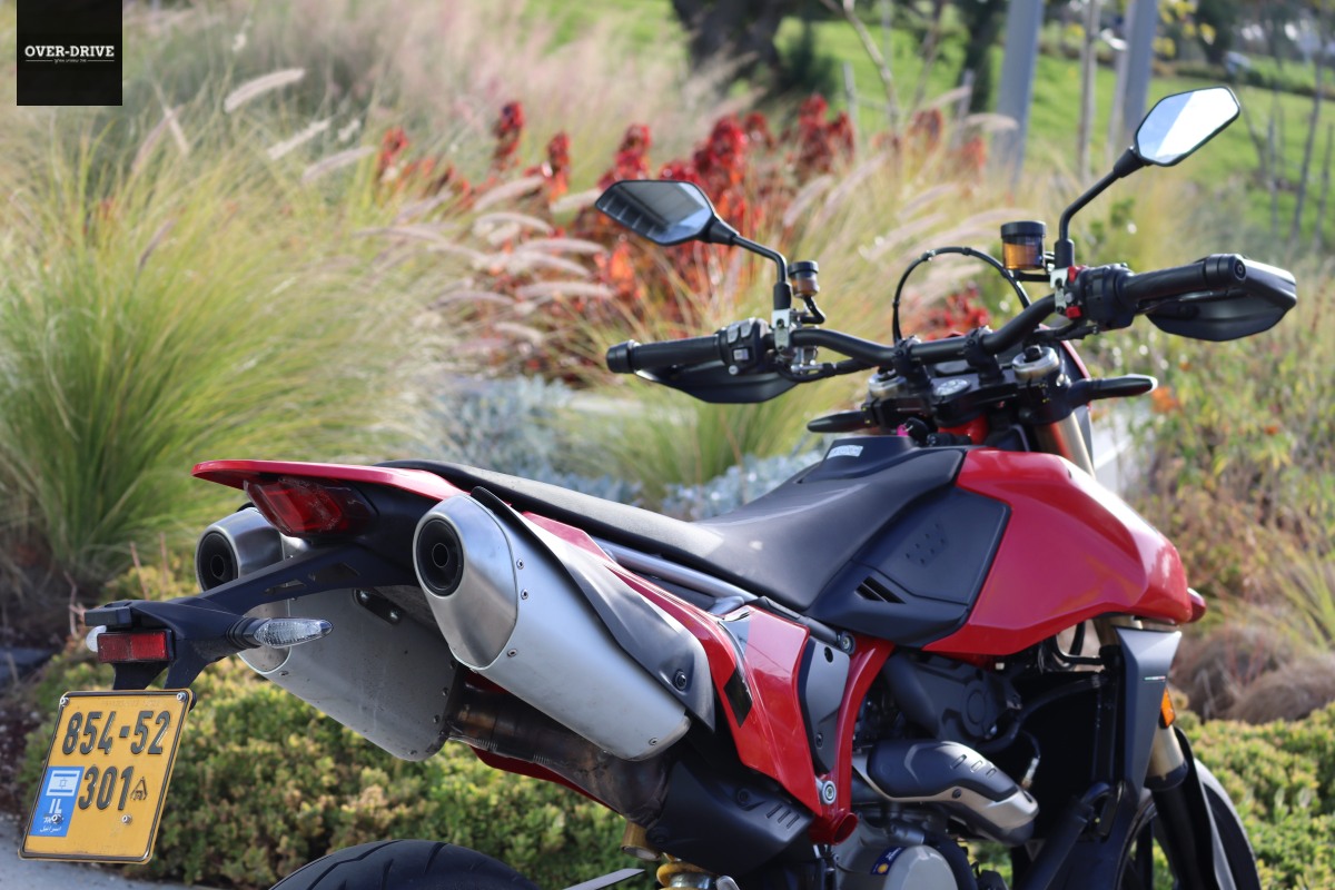 ההיפרמוטו הזה נותן לך חופש מוחלט בטווח העירוני ובכלל. אם זה לטפס גרם מדרגות מכאן או לקפוץ ממשטח אחד לאחר. הוא יכול לאכול הכל והספיגה של המתלים לא תעביר את עיקר החבטות אליך. בשבילי הכיול הבסיסי הוא קצת רך וזה התאים לי. הרכות הזו הפכה אותו לקצת יותר נשלט ורגוע עבורי. הגלגל הקדמי והאחורי עולים לאוויר ללא מאמץ. החלקות ארוכות בחסות המצמד המחליק הן גם חוויה. זה דורש התמסרות כי האחיזה של הפירלים איתנה, אבל ברגע שאתה שובר אותה החיוך לא יורד. בכביש מפותל מתגלים שינויי הכיוון המהירים והתחושה הנטועה. המונו לא מתבייש לעבוד על המתלים, להימתח ולשקוע כמו שסופרמוטו אמור לעשות, ולתת לך יותר משחקיות. כל זה כאמור, אם יש לך כוח וכושר להמשיך ולדחות אותו במשך יותר מכמה דקות.