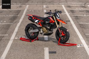 גם דוקאטי היפרמוטרד 698 מונו שנחשף בסוף 2023 משתמש באותה חשיבה. הוא למעשה בעל גרסת צילינדר בודד למנוע הסופרקוודרו V2 בנפח 1,299 סמ"ק שהניע את הפאניגלה. אפשר למצוא כאן את אותם שסתומי יניקה מטיטניום, בוכנת אלומיניום עם מהלך קצרצר ושני גלי איזון. עוד מתכות נדירות אפשר למצוא בכיסוי האלטרנטור, המצמד וראש הצילינדר שעשויים מסגסוגת מגנזיום. התוצאה היא לא רק מנוע שטס בסל"ד, אלא גם אחד קל למדי עם 44 ק"ג. סתם בשביל להבין את הרעיון, לאן הסינגל הזה, בד"כ תצורת מנוע בסיסית, מכוון. התוצאה היא הסינגל החזק ביותר בעולם עם 77.5 כ"ס ומנוע שיודע להסתובב ב-10,250 סל"ד. מי שרוצה יותר יכול להזמין מערכת פליטה השלמה של טרמיניוני שתעלה את ההספק ל-85 כ"ס. מספרים מכובדים בהחלט.
