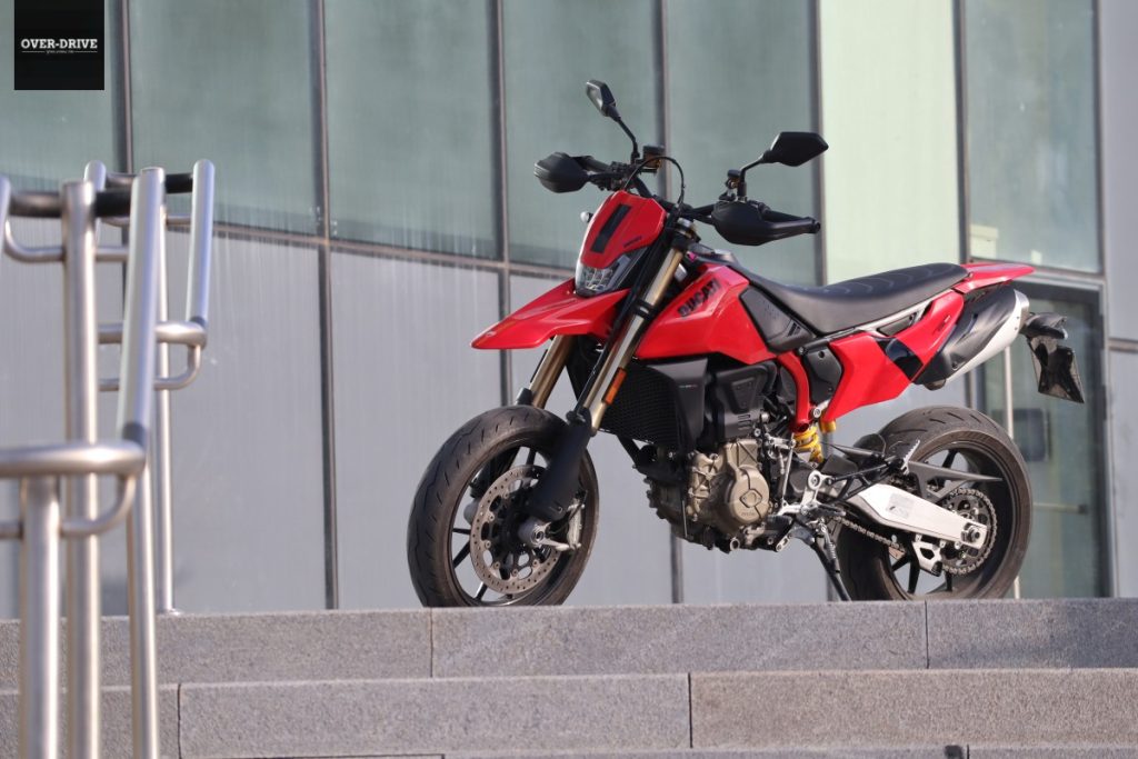 אם נצמד למכלולים עיקריים ולא נרד לפירוט דקדקני (ויש בהחלט על מה), נציין את המזלג ה-45 מ"מ של מרזוקי מלפנים מתכוונן לחלוטין ובעל מהלך של 215 מ"מ. מאחור יש בולם של זאקס, גם הוא עם כיוונים מלאים ומהלך של 240 מ"מ, והזרוע עשויה אלומיניום כולה. אפשר להבין שבדוקאטי דאגו כאן למשקל נמוך וזה רלוונטי לכל חלק כאן. מונובלוק של ברמבו על דיסק בודד בקוטר 330 מ"מ מלפנים דואג להאטה ונעצור כאן, לבינתיים. זה אולי סופרמוטו חשוף יחסית עם חיפויים שמזכירים מאוד אופנוע שטח (כמובן), כשאיכות ותחושות מגיעים מעולמות אחרים, יקרים ואיכותיים יותר. זה בולט בכל מקום מקצות החישוקים ועד לקצה המושב. כל זה שוקל בסוף היום 151 ק"ג יבש, 160 ק"ג רטוב.