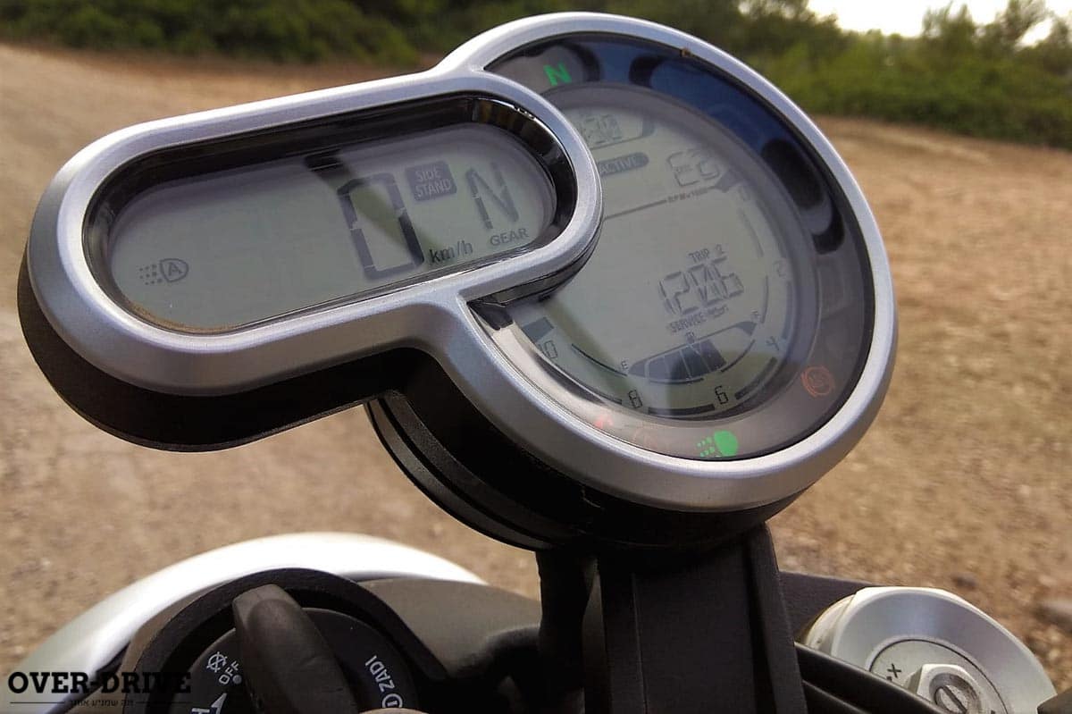 המכלולים, כרגיל אצל דוקאטי, נראים בריאים למדי. מלפנים יש מזלג מרזוקי בקוטר 45 מ"מ המתכוונן באופן מלא. מאחור יש בולם קאיאבה עם כיוון עומס קפיץ ושיכוך החזרה. מי שרוצה מכלולים של אוהלינס ייצטרך ללכת על גרסת הספורט. וזה מזכיר לי – דוקאטי סקרמבלר 1,100 מגיע בשלוש גרסאות, מעבר לבסיסית עליה אנחנו רוכבים ולספורט יש גם גרסת ספיישל. אם נחזור למכלולים, לכל הגרסאות יש מערכת בלמים של ברמבו עם מונובלוקים ראדיליים מלפנים (שני דיסקים בקוטר 320 מ"מ) וקליפר חד בוכנתי מאחור (דיסק בקוטר 245 מ"מ).