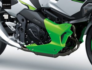 קאוואסאקי נינג'ה 7 ההיברידי מעוצב כאופנוע ספורט/טורינג המתאים לקו העיצוב העדכני של קאוואסקי, ללא "יציאות" עיצוביות עתידניות ומוגזמות. כך שלמעט הכיתובים על צידי הפרינג קשה לנחש שהוא מסתיר בתוכו יחידת הנעה לא שגרתית. המנוע של הנינג'ה 7 הוא טווין מקבילי בנפח 451 סמ"ק המספק 58 כ"ס, כאשר המנוע החשמלי הצמוד לו מספק 12 כ"ס צנועים יחסית, מה שמאפשר להפיק הספק משולב של 68.5 כ"ס.