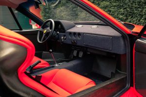 רוצים עוד פרטים על ה-F40 הזו? בבקשה. היא אחת מתוך 1,315 F40 שיוצרו ו-27 בלבד שהגיעו לספרד. למרות שכמעט לא נהגו בה, היא עברה תהליך שחזור והשבחה מלא עם אישור של פרארי לגבי תאימות המספרים הסדרתיים של המנוע והשלדה (חשוב לאין ערוך עבור אספנים) והיא מגיע גם עם תיעוד מלא של טיפולים בתיק המסמכים המקורי שסופק עם המכונית. בקיצור, כל מה שצריך בשביל לשכנע אספת לרשום צ'ק של כמה מיליונים.