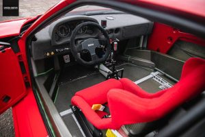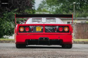 פרארי F40 היא כידוע בעלת מרכב סיבי פחמן, אך ה-F40 של סימפסון נבנתה עם מרכב של גרסת ה-GTE המיועדת למסלול, מרכב קל יותר ועוד יותר מינימליסטי מאשר במקור בכל הקשור לחומרי דיפון ובידוד, אם מספר תוספות אווירודינמיות כמו החרב הקדמית שעשויה גם היא מסיבי פחמן. בנוסף הותקן כלוב בטיחות תקני, מערכת כיבוי אש ועוד אבזור הכרחי לצורך שימוש על המסלול (ורק עם מושב נהג). בשנת 2005 הוחלפה תיבת ההילוכים לכזו בעלת שישה יחסי העברה בניגוד לחמישה ב-F40 המקורית. לאחר שסבסטיאני הפסיק להתחרות עם ה-F40 GTR הייחודית הזו היא אוכסנה עד לאחרונה במסלול בברנדס האץ' עד שלאחרונה בוצע "ניקוי מחסנים" והיא מצאה את עצמה חוזרת לחיים עם קצת יותר מ-7,000 ק"מ על השעון כשהיא מחפשת בית חדש דרך בית המכירות ICONIC Auction.