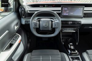 כניסה לתא הנוסעים מוכיח משהו שכבר ידענו. לא צריך עושר מוגזם וחומרים יקרים בכדי לייצר תא נוסעים עדכני ונעים. זול מצד אחד אבל שמח ומושקע מצד שני. שילובי בד מונחים כאן בחוכמה בכדי לשבור את השימוש בפלסטיק הנוקשה. תוויות עם מסרים חיוביים משולבים בדלתות. מסך גדול מרכז בתוכו את תפעול רוב המערכות שיש כאן. פשוט מאוד, אבל גם חמוד מאוד. המושבים טובים למדי והם מתוכננים מחדש ומרופדים יותר מהדור היוצא והמרווח מלפנים טוב מאוד. לי הציקה קצת הקונסולה המרכזית המסורתית. והייתי מוותר עליה בשמחה. אם בחיסכון ושימושיות עסקינן, היה אפשר לוותר עליה לכל אורכה ולתת למוחות היצירתיים של סיטרואן למצוא פתרון אחר. אולי מודולרי, אולי לוותר עליה לגמרי. מאחור ישנו המון מרחב לראש, אבל כפות הרגליים הגדולות שלי לא מצאו את מקומן. החיסכון ניכר בתא כאמור, אבל בשורה התחתונה, כשהמטרה היא להציג מכונית זולה מאוד, זה מקובל לחלוטין וסיטרואן צלחו את המשימה הזו בהצלחה.