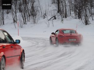 סיבוב מפתח ההתנעה והמנוע ניעור לחיים בקלילות מפתיעה ביחס לטמפרטורה הנמוכה שסובבת אותנו. שילוב להילוך ראשון, שחרור של המצמד והפורשה מתחילה לנסוע כאילו היא שוכחת שמדובר במשטח חלקלק. כל עוד הנסיעה איטית ורגועה אין כל דרמה, עד שמתחילים להרים את הקצב. המדריכים המקומיים מסבירים שבגדול האוטו לא רוצה לפנות ולא רוצה לציית לפקודות ההיגוי. בשביל לגרום לאוטו לפנות צריך להשתמש בגז ובבלמים ורק כך לעזור לו לפנות בהתאם לסיטואציה. אם מגיעים מהר לסיבוב צריך יחד עם ההגה גם לבלום ולהעביר משקל קדימה. האוטו יצא להחלקה בכניסה לסיבוב ואם עושים זאת נכון אז החרטום אמור להתיישר אל עבר היציאה. לחילופין בפניות אחרות מכת גז חדה (במכונית בעלת הנעה אחורית) תעזור גם היא להוציא את הרכב להחלקה יחד עם פקודת ההיגוי.