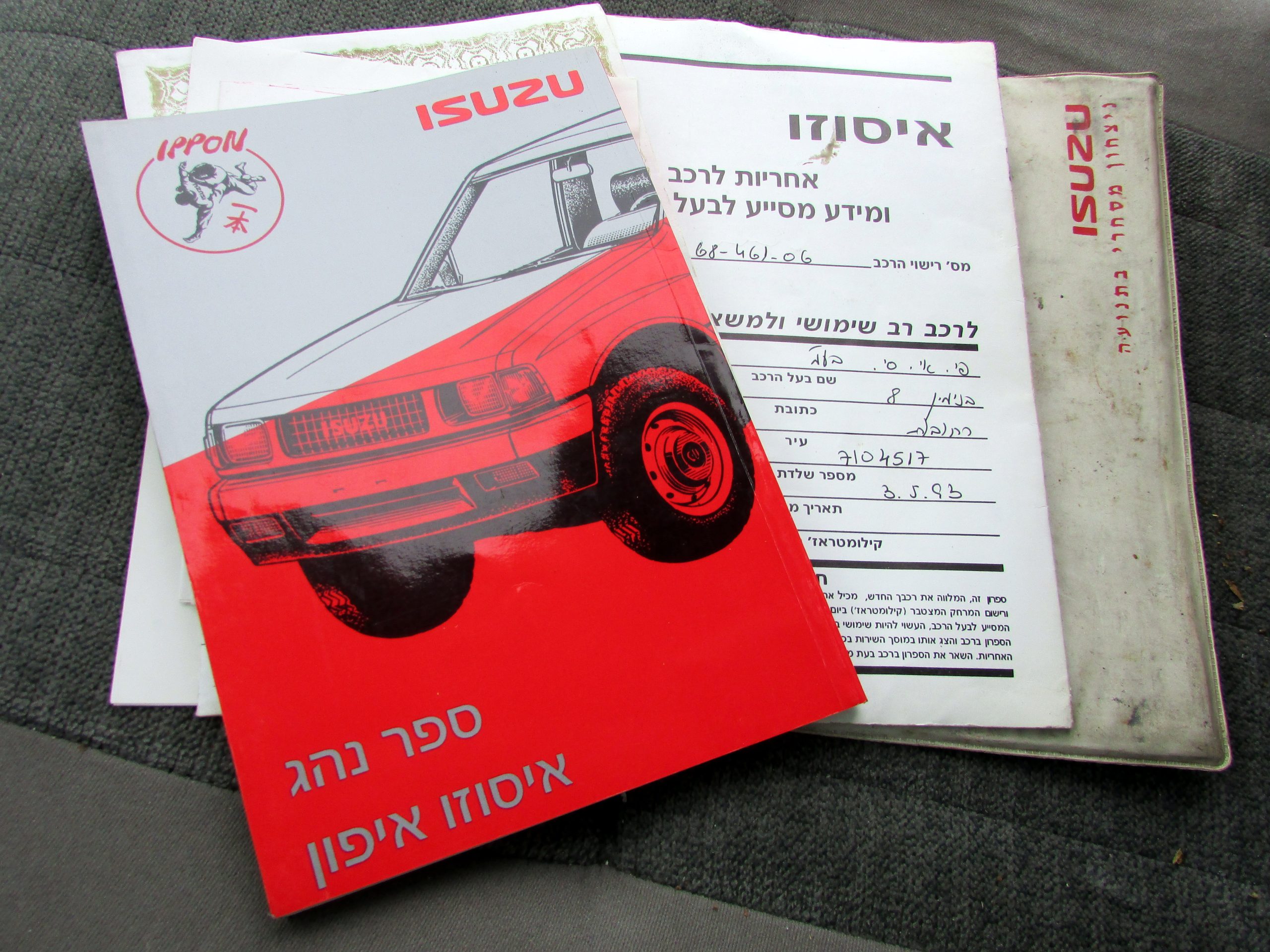 איסוזו איפון שנת 1993, יד שניה, עם 320,000 ק"מ על השעון. בטלפון סיפר לי הבעלים שאין עוד אוטו כזה, פגישה פנים אל פנים גלתה שהמוכר כרגיל הגזים קצת אבל בסה"כ המצב טוב. האוטו ישר, מניע ונוסע מצוין. רשמתי לעצמי כמה ריג'קטים קטנים וסגרנו ענין.