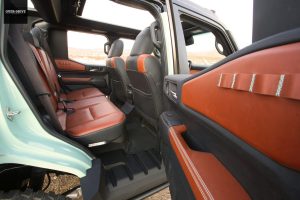 למראה הקרבי של לנד קרוזר ROX תורמת גם הגבהת מרכב של 4 אינץ' עם מתלים ארוכי מהלך משודרגים של חטיבת TRD. בנוסף נועל ה-ROX צמיגי שטח בשרניים ברוחב 8 אינץ' על חישוקי 18 אינץ' מאלומיניום שדרשו גם הוספת כנפוני פלסטיק מורחבים כיוון שהם בולטים החוצה מקו המרכב. את חבילת השטח משלים פגוש קדמי מאסיבי ממתכת, טבעות גרירה עבות ותוספת של שורת פנסים על הגג כדי לנווט את דרככם בלילה מדברי.