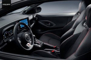 חידוש מעניין נעשה בתא הנוסעים כאשר ישנו עיצוב חדש ללוח המכשירים השונה מזה של דגמי היאריס הרגילים. ה-GR קיבלה מעין קוקפיט המשלב ביחידה אחת את לוח המחוונים ופאנל הפיקוד העליון. הקונסולה המרכזית הכוללת את מסך המולטימדיה מופנית בזווית של 15 מעלוות כלפי הנהג לתפעול אינטואיטיבי ומהיר יותר. לוח המחוונים החדש הוא מסך דיגיטלי בגודל 12.3 אינץ' עם מספר מצבי תצוגה המקרין מידע כמו מחוון להחלפת הילוכים, לחץ גדישה, מד כוחות G ובגרסה האוטומטית גם את טמפרטורת השמן של תיבת ההילוכים. בנוסף הונמכה תנחת הנהיגה ב-2.5 ס"מ.