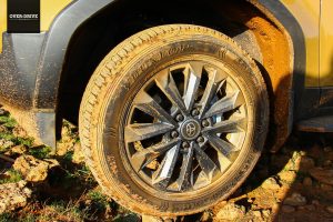 אחרי כמה עשרות קילומטרים יורדים אל השביל המסומן ושוכחים את כל מה ששיננו בהתחלה. יחידת ההנעה בשרנית למדי ומאפשרת ללנד קרוזר לצבור קצב מהיר על השביל המהיר הזרוע אבנים קטנות וגבנוניות. לא אתגר עבור המתלים שמגהצים היטב גם במהירות תלת ספרתית, עד שנתקלים בקפל רוחבי עמוק שמזכיר שבכל זאת יש סרן חי מאחור. קטע הנהיגה הראשון בשטח היה קצר למדי כיוון שהוא הוביל למחנה של טויוטה בין ההרים, שם נתחם מגרש משחקים עם מספר שעשועי עבירות טכניים שנועדו להמחיש את יכולות הלנד קרוזר החדש בטיפוסים, הצלבות וגלישה במורדות.