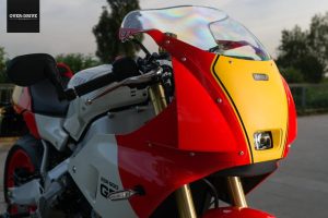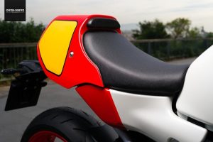 כדי להפוך את ה-XSR900 לרייסר קיבל האופנוע קליפאונים ויחידת מושב חדשה היוצרים תנוחת רכיבה ספורטיבית. האופנוע זכה ללחצי פרינג עם מסכה קדמית שמסווה את הפנס הקדמי במה שנראה מרחוק ככונס אוויר, כשמאחור ישנה יחידת זנב רבוע בסגנון אופנועי הספורט של האייטיז. שלדת האופנוע והזרוע האחורית נותרו במראה אלומיניום חסוף, בסגנון שלדת הדלתאבוקס של ימאהה מהתקופה. את הלוק משלימה סכמת צביעה בשילוב של אדום לבן עם משטחים צהובים מלפנים ובצידי הזנב עבור מספר הרוכב, כשהיא דווקא מחווה לאופנועים עליהם רכב ווין רייני (שזכה עם ימאהה בעוד 3 אליפויות בתחילת שנות ה-90).