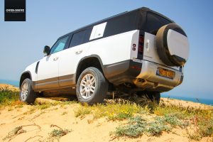 עכשיו בואו נחזור להווה. כבר בחנו את דיפנדר 110 לעומק ולכן נתמקד בהבדלים בין הדגמים. בשונה מן העבר, ה-110 וה-130 חולקים את אותו בסיס גלגלים והשינוי היחידי הוא תוספת של קצת יותר מ-30 ס"מ לאחורי הרכב. הנחת העבודה היא, שמי שרוצה רכב שטח קרבי ומעוניין לכבוש את הצירים המאתגרים ביותר מבחינת עבירות כנראה לא ירכוש את ה130-, אז כך גם בחנו אותו.