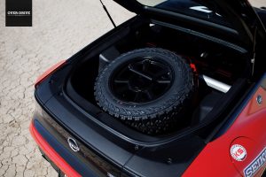 המרכב הוגבה ב-2 אינץ' והותקנו קוילאוברים של KW עם רכיבי מתלה שופרים ומחוזקים של חטיבת NISMO. את ההגבה משלימים צמיגי שטח M/T של יוקוהאמה על חישוקי 17X7.5 מחוזקים של NISMO,כאשר הגלגל החילופי נמצא בתא המטען. את הלוק הקרבי משלימים פגוש קדמי חדש לשיפור זוויתה גישה ומיגוני גחון מאלומיניום. תא הנוסעים מוצייד בכלוב בטיחות חלקי, מושבי רקארו עם חגורות בטיחות בעלי 4 נקודות עיגון וכמתבקש גם ציוד עזר לנווט שלצד הנהג.