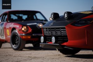 המכונית הראשונה היא דאטסון 240Z שנבנתה כרפליקה למכונית שהשתתפה בראלי המקורי. מדובר במכונית ששוחזרה על ידי אספן של מכוניות ניסאן למצב מקורי כבר לפני עשור, השתתפה בפרסומות של ניסאן בצפון אמריקה ועוצבה מחדש כדי להיראות כמו המכונית שניצחה בראלי לפני יותר מ-50 שנה, כולל רתמות בטיחות במושבים, ציוד כיבוי אש הכי חשוב, מתקן למפות עם שעוני ניווט עבור הנווט, תזכורת לתקופה שלפני עידן ה-GPS.