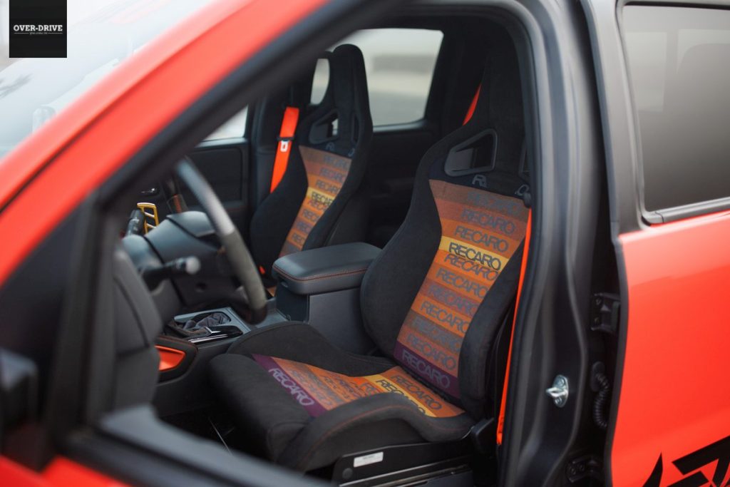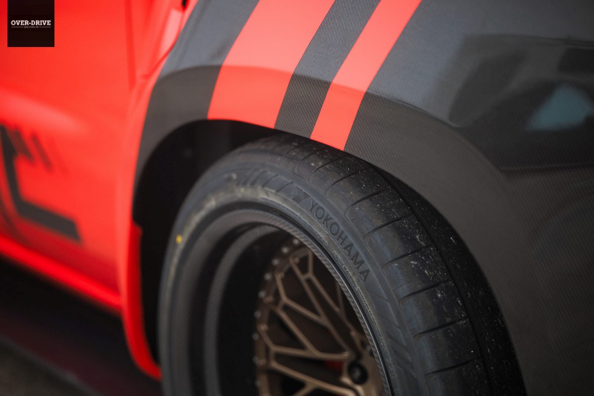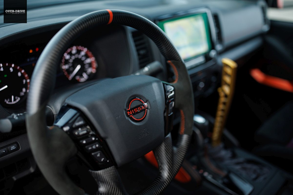 את הלוק הקרבי של הניסאן פרונטיר משלימה הנמכת מרכב משמעותית שבין 10 ל-15 ס"מ, זאת בהתאם לכיול הנבחר של ערכת הקויילאוברים המתכווננים מתוצרת ניסמו. את בתי הגלגלים הנפוחים ממלאים חישוקי 20 אינץ' קלים הנועלים צמיגי יוקוהמה ספורטיביים במידות 275/40 מלפנים ו-315/35 מאחור.