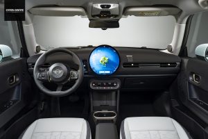 שינוי משמעותי יותר נעשה בתא הנוסעים, כאשר למעשה הקוקפיט כולו זהה לזה של המיני החשמלית. זה אומר שאין לוח מחוונים מאחורי ההגה וכל תצוגת המידע, כמו גם תפעול המערכות השוות ומערך המולטימדיה מתרכז במסך העגול הענק שבמרכז הדשבורד. פאנל הפיקוד המרכזי כולל את מצג ההנעה, בורר ההילוכים ובורר מצבי הנהיגה. מיני קופר בנזין תוצע בשלוש ורסיות גימור פנימי ועיצוב חיצוני: קלאסיק הבסיסית, ספורט בעלת שבכה מושחרת וגימורים ספורטיביים בתא הנוסעים ואקסקלוסיב היוקרתית עם ריפודי משולבי עור ורמת אבזור גבוהה במיוחד. גם היצע מערכות הבטיחות האקטיסיות שודרג ומיישר קו עם האחות החשמלית.