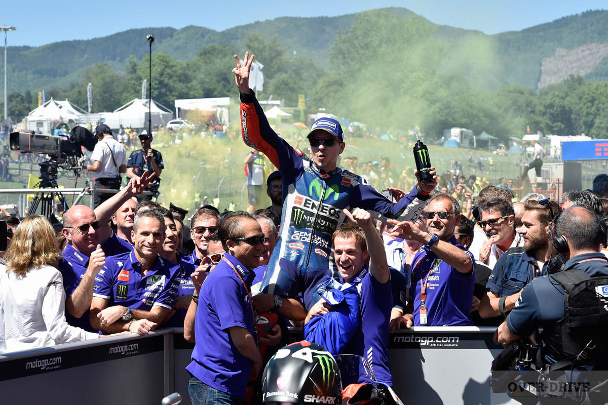 בסופו של דבר, אותה תקרת סל"ד גבוהה שגרמה ללורנזו מפח נפש עמוק כשמנועו התפוצץ בטרם עת במהלך מקצה האימון, היתה זו שסייעה בעדו לגנוב ניצחון מתחת לאף של מארק מרקז. בהאצה מהפניה האחרונה לקו הסיום, ניצל אלוף העולם המכהן כל הילוך עד לקצה סל"ד האפשרי (הגבוה מדי) הכדי לחלוף על פני ההונדה של מרקז ולנצח.