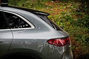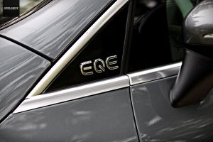 ידיות פתיחת הדלתות מוסלקות בגוף המכונית, ומרווח הגלגלים הנדיב מכתיב עיצוב ייחודי. בקורה A מופיע הסימול EQE על מנת שהעוברים והשבים לא יוכלו להתבלבל עם רכב אחר מהמשפחה הענפה. מאחור ה-EQE SUV מציג מראה "נקי" הכולל ספוילר עדין ויחידות תאורה המחוברות ביניהן. בתחתית הפגוש הותקן פס ניקל במקום שפעם לרכבים היו פתחי מפלט. ה-EQE SUV נראה אלגנטי ועדכני, אבל לא צעקני. עם זאת היינו מוותרים בשמחה על תוספת מדרגות הצד הארוכות והבולטות הפוגמות במרווח הגחון ולא משתלבות עם המראה הכללי המוצלח.