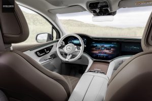 העיצוב שומר על קווים מעוגלים ואווירודנמיים ובמרצדס לא שכחו להצמיד גם כאן את החזית המוכרת של משפחת EQ, עם השבכה האטומה המושחרת והמרשימה לצד יחידות התאורה האופייניות. תא הנוסעים מציג גם הוא את הקו העדכני של מרצדס בתוספת ממשק MUBX העדכני המתבסס על מסך 12.3 אינץ לנהג ומסך מגע 12.8 אינץ' במרכז לוח המכשירים, אליהם מצטרפת תצוגת נתונים עילית צבעונית. כאופציה מוצע מסך ה-HyperScreen בגודל 141 ס"מ המתפרש על כל לוח המכשירים וכולל גם אופציות תפעול ובידור נפרדות מול הנוסע מלפנים.