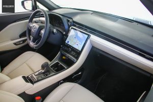 אבל עם כל הכבוד לכל השינויים הללו, הדבר הראשון שמאפיין יוקרה הוא התחושה בתא הנוסעים. כאן אפשר להגיד שלקסוס עשו עבודה טובה למדי. עיצוב תא הנוסעים לא פורץ דרך, אך השדרוג ברמת איכות החומרים ניכר כאשר לפלסטיקה נעימה מצטרפים מושבים, דיפוני דלתות ולוח המכשירים העוטים עור סינטטי, עור נאפה או ז'מש בהתאם לארבעת רמות הגימור השונות. בצד הטכנולוגי ישנו מסך 12.3 כלוח מחוונים ואת מגנון פתיחת הדלתות החשמלי מדגמי לקסוס הבכירים, לצד תאורת אווירה עשירה וחימום למושבים. מעבר לכך ישנם פריטי אבזור לא אופייניים לקטגורית הגודל כמו חימום הגה, פתיחה חשמלית לדלת תא המטען ואופציה לתצוגת נתונים עילית ומערכת שמע עם 13 רמקולים (אופציות שלא קיימות ב-LBX במפרט המקומי בישראל). גג שמש פנורמי לעומת זאת לא מוצע כלל.