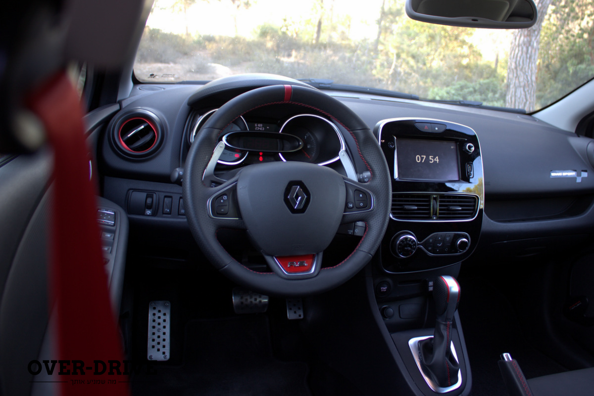 נזכיר שהקליאו RS מוצעת עם שלושה כיולים לשלדה – ה'ספורט' שהייתה אמורה לאזן בין נוחות לביצועים בכביש המפותל וה'קאפ' (מעט יותר מחודדת) הגיעו לארץ בעבר, אך כעת מגיעה רק גרסת ה'טרופי' שלטענת רנו ממקדת את הקליאו למסלול. הטרופי זוכה להנמכה של 20 מ"מ מלפנים ו-10 מ"מ מאחור, חישוקי 18 אינץ' נאים ולתוספת הספק שמעמידה את התפוקה על 220 כ"ס (ב-6,050 סל"ד, תוספת של 20 כ"ס) ו-26.5 קג"מ (ב-2,000 סל"ד). בהילוך הרביעי והחמישי מקבלים תוספת של כ-2.0 קג"מ נוספים במצב גדישת-יתר. נשמע טוב.