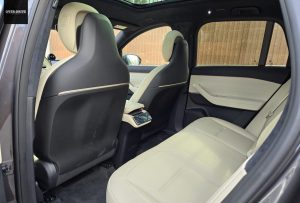 מיעוט הכפתורים, יחד עם העובדה שלניו אין תא כפפות פחות או יותר מסכמות את רשימת התלונות הקצרה שלנו. הסיבה לכך היא שרשימת האבזור, איכות החומרים, השילוב בין החומרים והצבעים של החומרים בתא הנוסעים של הניו אכן מספקים אווירה יוקרתית לה מצפים. מעבר למושב האחורי חושף מרווח פנימי מצוין. כיף לשהות שם: מערכת בקרת האקלים מאחור נשלטת באמצעות מסך, משענת היד כוללת תא ושקע טעינה, גג השמש הפנורמי מכניס המון אור, וכדי שהילדים לא יריבו מי ישב מקדימה הותקנה גם מערכת אוורור, חימום ועיסוי במושב האחורי. בהחלט לא פרט שכיח בתעשיית הרכב, גם ברכבים יקרים משמעותית מה-EL6. תא המטען של ה-EL6 נדיב ממדים והוא מסוגל לאכלס ציוד בנפח של עד 579 ליטר, והוא נפתח ונסגר באופן חשמלי כמובן.