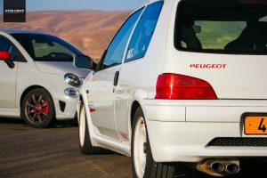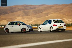 כאמור, זה לא מבחן השוואתי. לא צריך להתייצב במסלול בחום של 40 מעלות כדי לדעת שהאבארט מהירה יותר, נוחה יותר לשימוש יום יומי (תודה למזגן), ובאופן אירוני ומשעשע אפילו שימושית יותר. כשמעמידים אותן אחת ליד השניה שתיהן נראות צעצועיות. האבארט שופעת הספוילרים הרבה יותר מוחצנת ואלמלא המדבקות הצנועות הפיג'ו הלבנה נראית כמעט כמו מכונית מהשכרה. מה שמפתיע הוא שהגובה והקימורים של האבארט יוצרים אשליה אופטית שהיא מכונית גדולה יותר, למרות שבפועל הפיג'ו ארוכה ב-2 ס"מ ויש לה גם בסיס גלגלים ארוך ב-6 ס"מ.