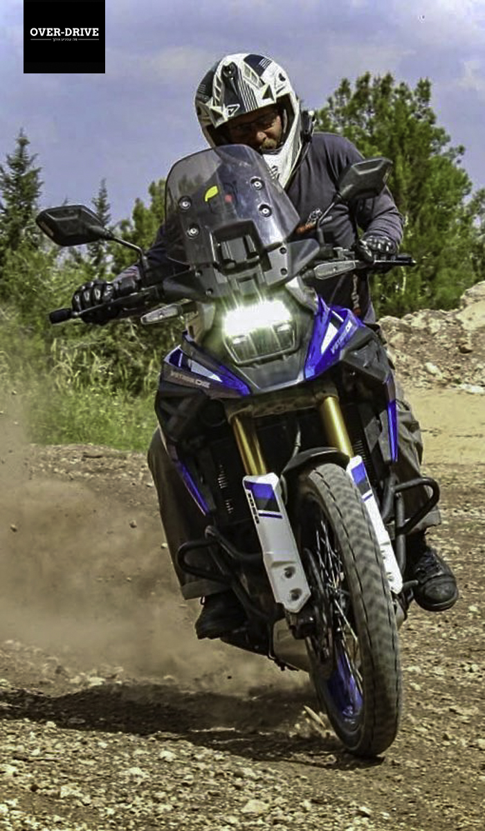 באחת מפינות האולם, רחוק מאחור, העיניים שלי נתקעו על ענק בצבע כחול-לבן. התקרבתי. זה ויסטרום 1050 עם גלגל 21'. בכלל לא ידעתי שיש כזה. אבל הנתון היחיד הזה, שינה את כל ההסתכלות שלי על היפני הוותיק והמוכר. הוא הגיע ארצה בסוף 2023 ונקרא סוזוקי וי סטרום 1050DE. מנוע וי-טווין 1050, מתלים מוארכים טיפה, מגן גחון, רגליות רחבות, גוף שבנוי לרכיבה בעמידה עם חופש תנועה לכל הכיוונים. וואלה, האופנוע עומד בכל המדדים, אז יאללה תביא.