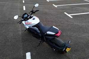 אני נזכר שבהשקה הוא הרגיש לי קצת רך מדי. ובאמת זה עניין של ממדים והעדפות אישיות. אני מתחיל להריץ בראש את הרשימה הקבועה שיש לי עם כל אופנוע. מה הייתי משנה, מה הייתי מחליף. אני מתחיל לבנות בראש את קאטאנה החלומות תוך כדי שהסוזוקי מפרק את ההר. מערכת פליטה היא בגדר חובה עם מנוע כזה. אולי להתאים את הקפיצים בבולמים בתפירה אישית. כידון רחב יותר? למה לא. מראות ומאותתים אני משאיר בבית וגם את הזרוע שמחזיקה את המספר.