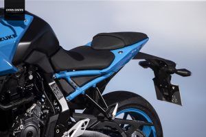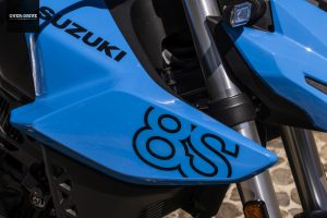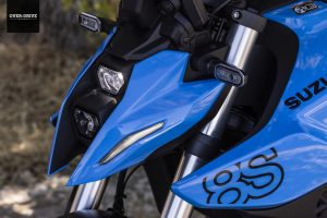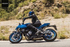 השלדה בה נתון המנוע הזה מחוברת אל הגלגל האחורי דרך בולם מתוצרת קייאבה מאחור וזרוע אלומיניום. מלפנים יש מזלג הפוך מאותה התוצרת. סוזוקי בחרו בבסיס גלגלים ארוך יחסית בכדי לייצר יציבות כיוונית מצוינת ומצד שני ההיגוי כאן חד, מהיר, מדויק. התוצאה היא אופנוע שנוסך המון ביטחון מצד אחד וכזה שנותן התנהגות ותגובתיות מצוינת. כיול המתלים משובח, לא פחות. כזה שיודע לבודד את הרוכב על מפגעי העיר, אבל שומר על תחושה של חתיכה אחת בקצב מהיר יותר, מצמיד את הגומי לאספלט גם על כבישים לא מושלמים. הבלמים משלימים את החבילה הזו עם פעולה לינארית ועוצמתית. כל זה ארוז בגוף רזה, כזה שמרגיש קליל, זמין לכל גחמה ומשחק. מחלקת האלקטרוניקה כאן עושה את אותה העבודה, פעולת בקרת המשיכה עגולה, איכותית ולא מטלטלת. המעבר בין מצבי הרכיבה משנה את מידיות התגובה ותמיד שומר על פעולה טבעית של המצערת. התוצאה כאמור, עגולה ואיכותית מחד ומאוד מלהיבה ומהנה לרכיבה מאידך. מי שיבחר לנתק את הבקרות, ייגלה אופנוע שממש שמח להניף את הגלגל הקדמי לאוויר או לחילופין לשלוח את האחורי לטייל לרוחב הכביש וזה פשוט נהדר.