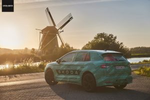 סקודה אלרוק מתרגל הסוואה בנוף הולנדי טיפוסי