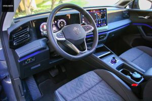 יחידת ההנעה איתה מגיע הטיגואן החדש לישראל היא אותה יחידה המשלבת בין מנוע 1.5 ליטר מוגדש עם מערכת תגבור היברידי 48V אותה מכנים בפולקסווגן eTSI. 150 כ"ס ו-25.5 קג"מ כבר לא ממש עושים רושם בימנו, אבל כמו בדגמים נוספים שבחנו לאחרונה בהם מופיעה יחידת הנעה זו (פולקסווגן גולף, סקודה קודיאק) השילוב עם תיבת ההילוכים כפולת המצמדים הגיע לבשלות ברמה גבוהה. למרות רצון מובנה להיות בהילוך הגבוה ביותר שניתן והיסוס ראשוני, הנכונות של תיבת ההילוכים לנצל את מלוא גמישות המנוע מאפשר לטיגואן להתנהל בזריזות ברוב תנאי הדרך ומצד שני לא לייצר תחושה של מאמץ מוגזם. יעילות זה שם המשחק גם כשמגיעים לצריכת הדלק הממוצעת שגם עם רגל כבדה ביום חם עומדת על כמעט 13 ק"מ לליטר. ממש לא רע בהתחשב שהטיגואן חטוב רק למראה ושוקל 1.6 טון.