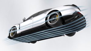 במקור פורשה טייקן אמורה הייתה להשתמש בתת שלדה הקדמית של הפאנאמרה אך הרצון של המעצבים לשמור על אף נמוך דרש לשכלל ולהנמיך את המתלה הקדמי ובעיקר את מיקום הבולמים המתכווננים חשמלית. זו רק דוגמה אחת, להשפעה של המבנה האווירודינמי על תיכנון המכונית הזו. מקדם הגרר הדמיוני (cd 0.22) מסביר בצורה ברורה מאוד את תשומת הלב האוידרודינמית שקיבל הטייקן.