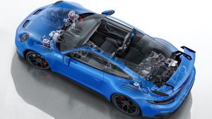 כמה שאנחנו אוהבים מנועים אטמוספריים. ועוד אחד כמו זה – פורשה 911 GT3 עם מנוע ששת הציל' הנפלא בנפח 4.0 ל'. ההספק עומד על 502 כ"ס והמומנט על 47.7 קג"מ. והבוקסר הזה לא מפסיק לנגן עד 9,000 סל"ד.