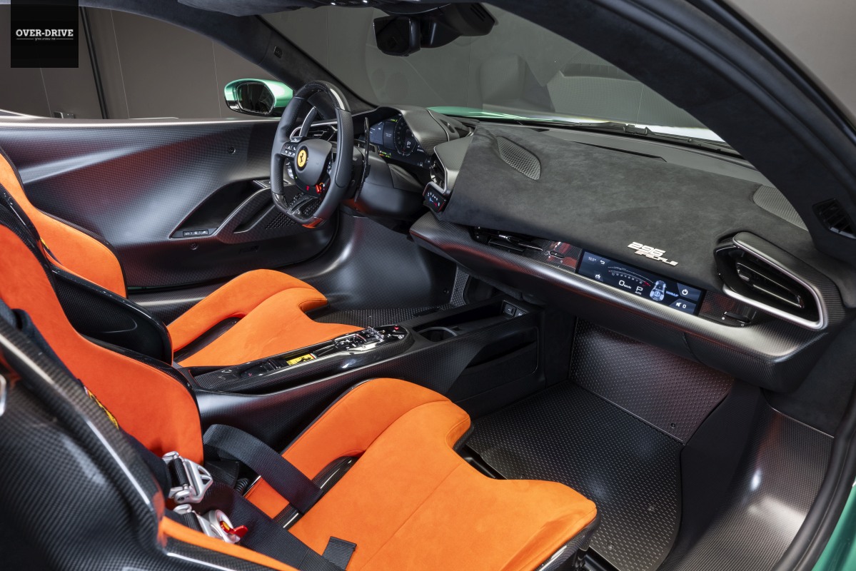 הרכיב הראשון שזכה להתייחסות הוא המנוע. מנוע ה-V6 כפול המגדשים עבר טיפול מעמיק שכולל החלפת רכיבים כמו למשל טלטלים מטיטניום הקלים יותר ב-35%, גל ארכובה מחוזק וקל יותר, העלאת הלחץ בתוך חלל הצילינדר ומערכת שימון משופרת. יחד עם שימוש בברגי הידוק מטיטניום המנוע קל יותר ב-9 ק"ג ומספק 37 כ"ס יותר מאשר ב-296 הסטנדרטית, מה שמביא אותו ל-700 כ"ס המתקבלים ב-8,000 סל"ד. המומנט המרבי צמח בקג"מ וחצי ל-77 קג"מ בסך הכל, המתקבלים 250 סל"ד מוקדם יותר ב-6,000 סל"ד. המערכת ההיברידית שודרגה אף היא עם מנוע חשמלי המספק כעת 180 כ"ס. התוצאה הסופית היא הספק משולב של 880 כ"ס – תוספת של 50 כ"ס לעומת יחידת ההנעה של פרארי 296 GTB/GTS הרגילות.