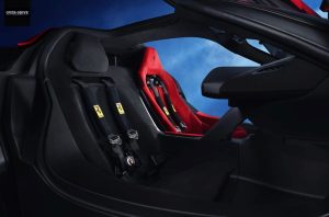 גישת ההארד קור ממשיכה גם לתא הנוסעים של ה-F80. המינימליזם שולט ולא תמצאו כאן יותר מידי הידור, אבל כן הרבה סיבי פחמן, בלי מסכי מולטימדיה אבל כן מסכים מינימליים לבקרת האקלים וברגים חשופים בשביל להעצים את התחושה הרייסרית הממוקדת (וגם כי חוסכים ככה כמה גרמים). מה שמחזק את הגישה הזו עוד יותר הוא סידור המושבים שנועד להעניק תחושה של מכונית לנהג בלבד, לא רק מבחינת עיצוב הקוקפיט הממוקד אך ורק בו.  לנהג ישנו כמובן מושב באקט ספורטיבי מהשורה הראשונה עם חגורת בטיחות בעלת חמש נקודות עיגון, כשלצידו יש מושב נוסף שהוא לא ממד מושב אלא מעניין דרגש מקובע בעל ריפוד מינימליסטי שנועד לנוסע מזדמן עם שלא ממש סובל מבעיות גב.