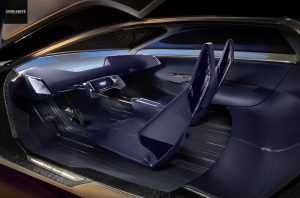 דלתות פרפר ענקיות המהוות גם חלק מהגג ופותחות פתח כניסה עצום לתא הנוסעים, כאשר בהיעדר קורה מרכזית (כמקובל בדגמי תצוגה) מתאפשרת כניסה נוחה גם למושב האחורי. תא הנוסעים העתידני והמינימליסטי כולל מסך עצום המשולב כחלק מהפאנל הקדמי, כאשר מסך נוסף המשמש כלוח מחוונים נמצא בתוך מה שאמור להיות גלגל ההגה ונראה יותר כמו מוט היגוי של מטוס.
