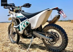 אבל כל זה רק חצי עבודה. מעל הליבה המתגלגלת הזו הולבש מרכב ראלי טהור. מיגון רוח שמאחוריו מגדל ניווט עם חיבור לחשמל, שני מכלי דלק קדמיים משני צידי המנוע (15 ליטר), מיכל זנב (8 ליטר), מגן גחון כולל תאי אחסון כלים, תופסנים לפירוק מהיר של הפלסטיקה הגמישה לצורך נגישות לטיפולים ותיקונים בשטח, רגליות ענקיות לרכיבה בעמידה, מושב שטוח מראש ההגוי ועד הכנף האחורית ואפילו תושבות גמישות לכידון למניעת רעידות. הגרסה עליה רכבתי של קובה 450 ראלי היא זו עם מושב בגובה רגיל ומהלך המתלים הארוך (300 מ"מ. יש גם 270 מ"מ לגמדים), כשהמנוע הספציפי קיבל קיט מקורי של תוכנה פלוס סעפת פול סיסטם מוגדלת – מה שמביא אותו לאזור ה-60 כ"ס. בקיצור, אופנוע שלוקחים מהסוכנות ישר למרוץ בעממית של כל ראלי שתרצה.