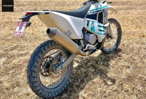 איך? תכנון מאפס. לא חיקויים ולא הסבות. המנוע החל את דרכו כמנוע גנרי של זונגשן (שמבוסס על מנוע ה-CRF של הונדה), אבל במהלך הפיתוח זכה להסרת מגבלות, ראש משופר, מעברי מים ורדיאטור מוגדלים, יחסי העברה ייעודיים לראלי בתוך הגיר ועוד כל מיני. זה יוצא סביב ה-47 כ"ס בגרסת הבסיס (נגיע לזה). השלדה ייעודית גם היא לראלי; בהשוואה לאופנוע אנדורו ממוצע יש בה זווית היגוי מתונה במעלה, טרייל מוגדל וזרוע אחורית מוארכת שמשלימה לכדי בסיס גלגלים ארוך בחמישה ס"מ – הכל לטובת יציבות במהירויות גבוהות. גם המתלים (מתוצרת עלומה על בסיס Showa) הם בעלי כיול בסיסי מותאם לעומסי רכיבת ראלי.